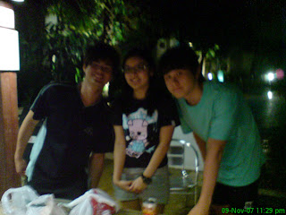BBQ last night over at jackson's house, including celebrations for the November babies. mainly, my boy, faline and jackson together. eating, playing, tennis in the night was really good till suddenly it poured, non-stop. stayed over till 6am & i'm surprised my parents laterally didn't scold at all. perhaps, faline was there or what? okay, we played cards thru' out the nights our and i swear i didn't sleep at all till i was home. :X